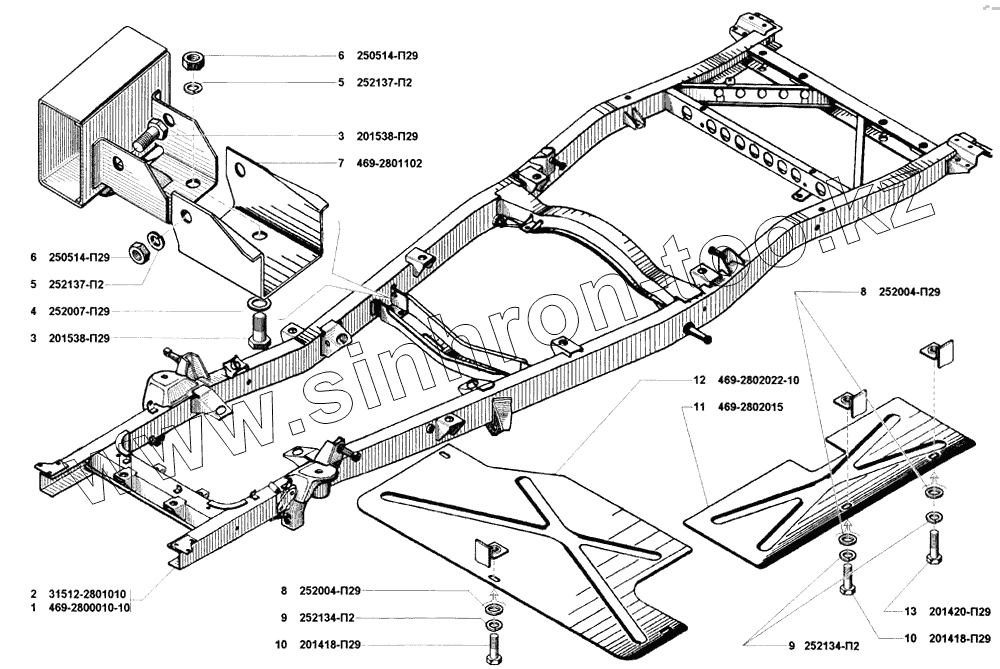 Каталог запасных частей к технике: УАЗ-31519. Рама, брызговики двигателя