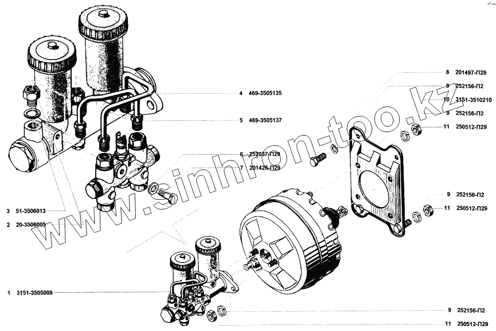Каталог запасных частей к технике: УАЗ-31519. Цилиндр главный гидравлических тормозов