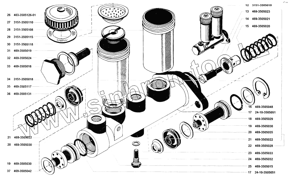 Каталог запасных частей к технике: УАЗ-31519. Цилиндр главный гидравлических тормозов