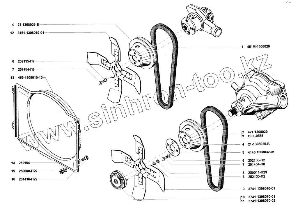 Каталог запасных частей к технике: УАЗ-31519. Вентилятор и кожух вентилятора