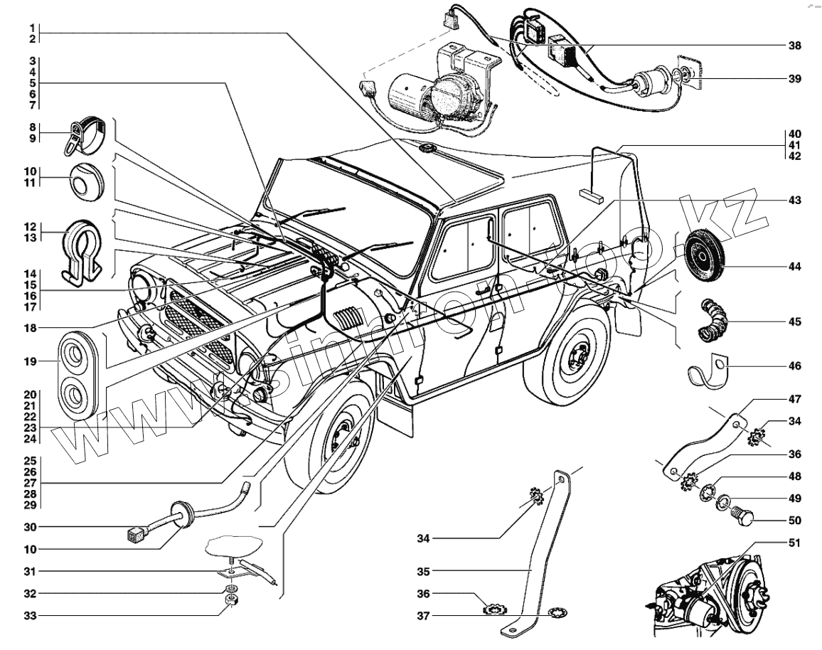 Каталог запасных частей к технике: УАЗ-31519. Электропровода
