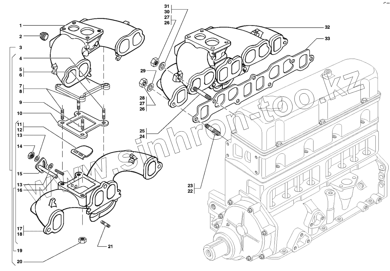 Прокладка между впускной трубой и выпускным коллектором