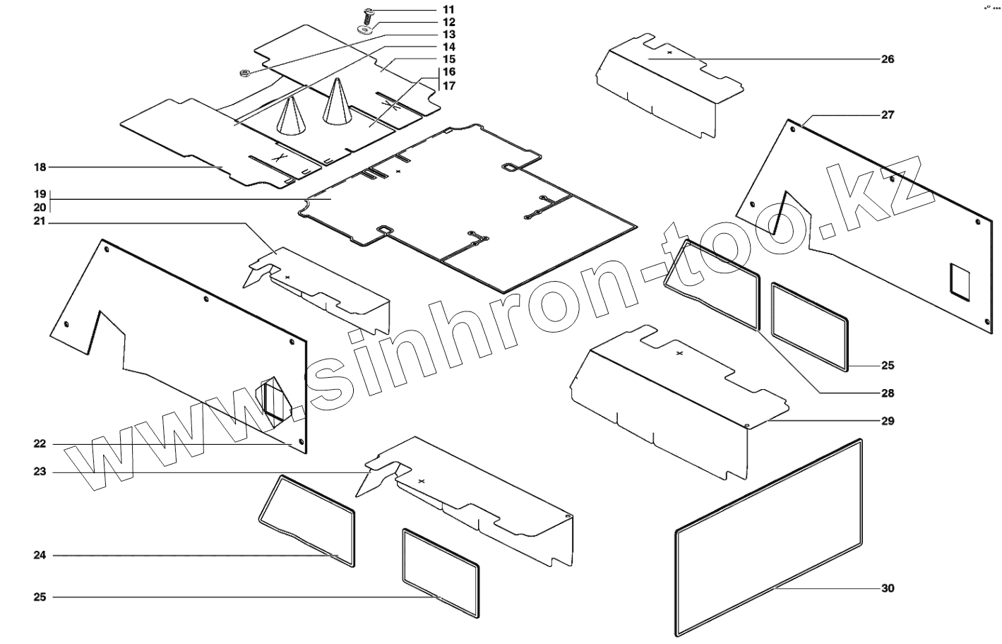 Основание в сборе, каркас, кожухи пола