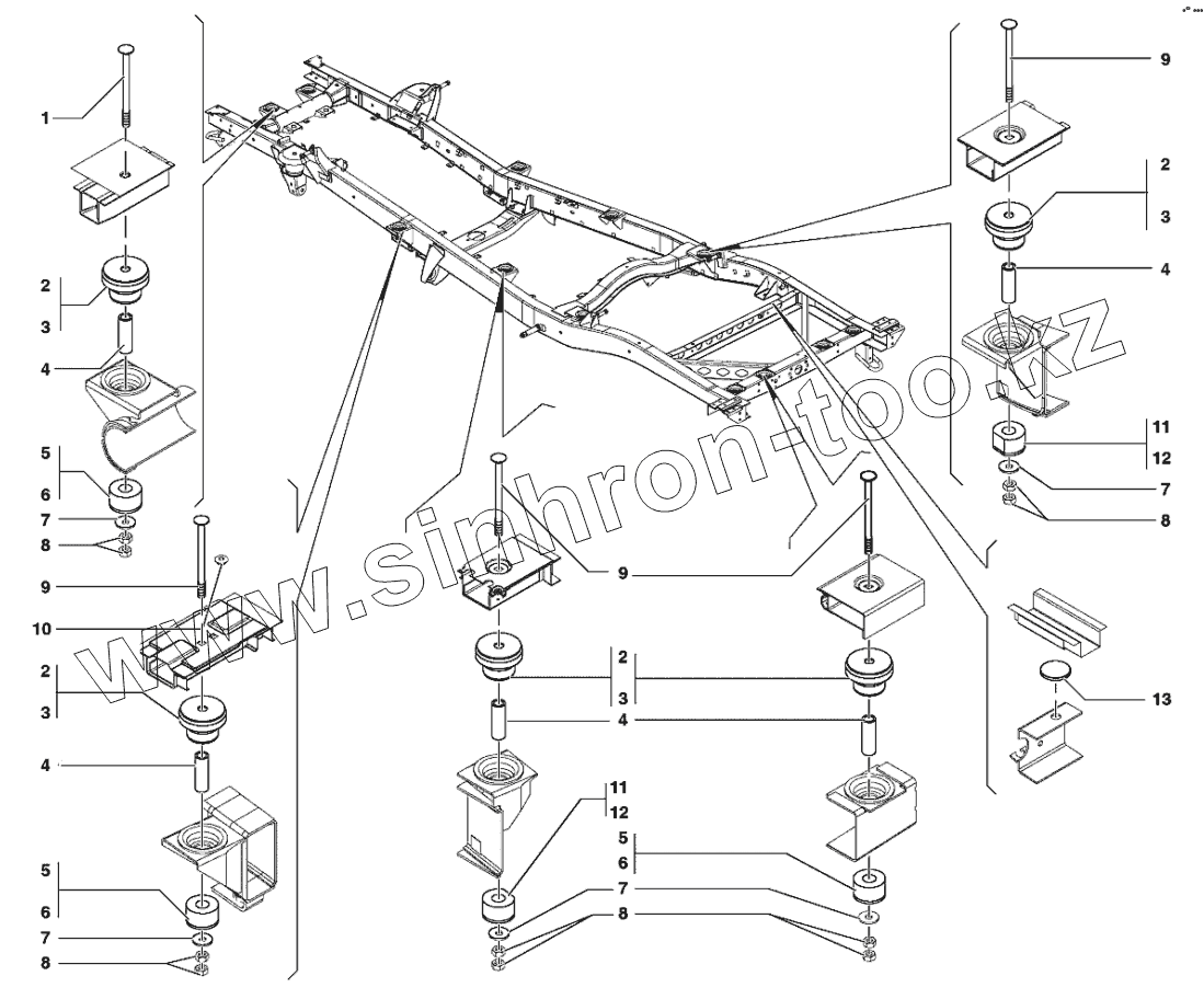 Каталог запасных частей к технике: УАЗ-31519. Крепление кузова к раме