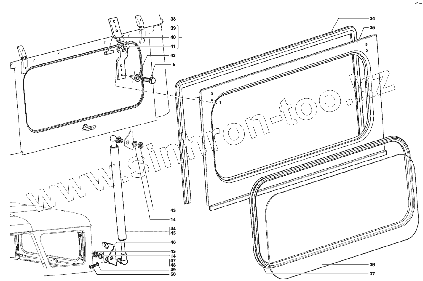 Надставка передней двери в сборе, окно надставки передней двери, уплотнение надставки передней двери, надставка задней двери в сборе, окно надставки задней двери уплотнение надставки задней двери