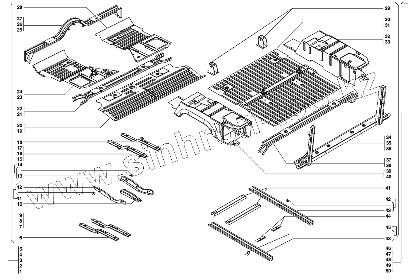 Каталог запасных частей к технике: УАЗ-31519. Основание в сборе, каркас, кожухи пола