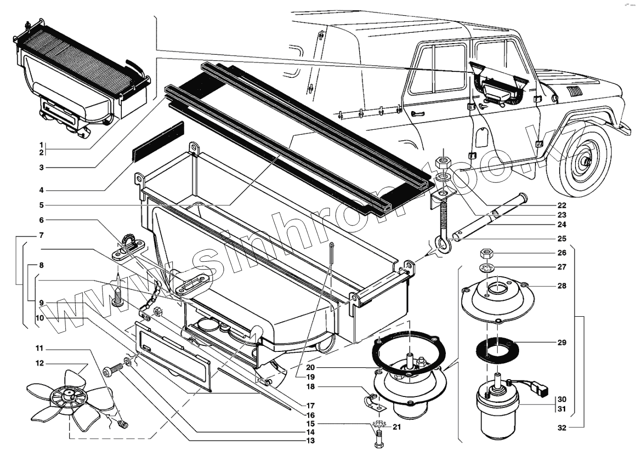 Каталог запасных частей к технике: УАЗ-31519. Отопление кузова и трубопроводы