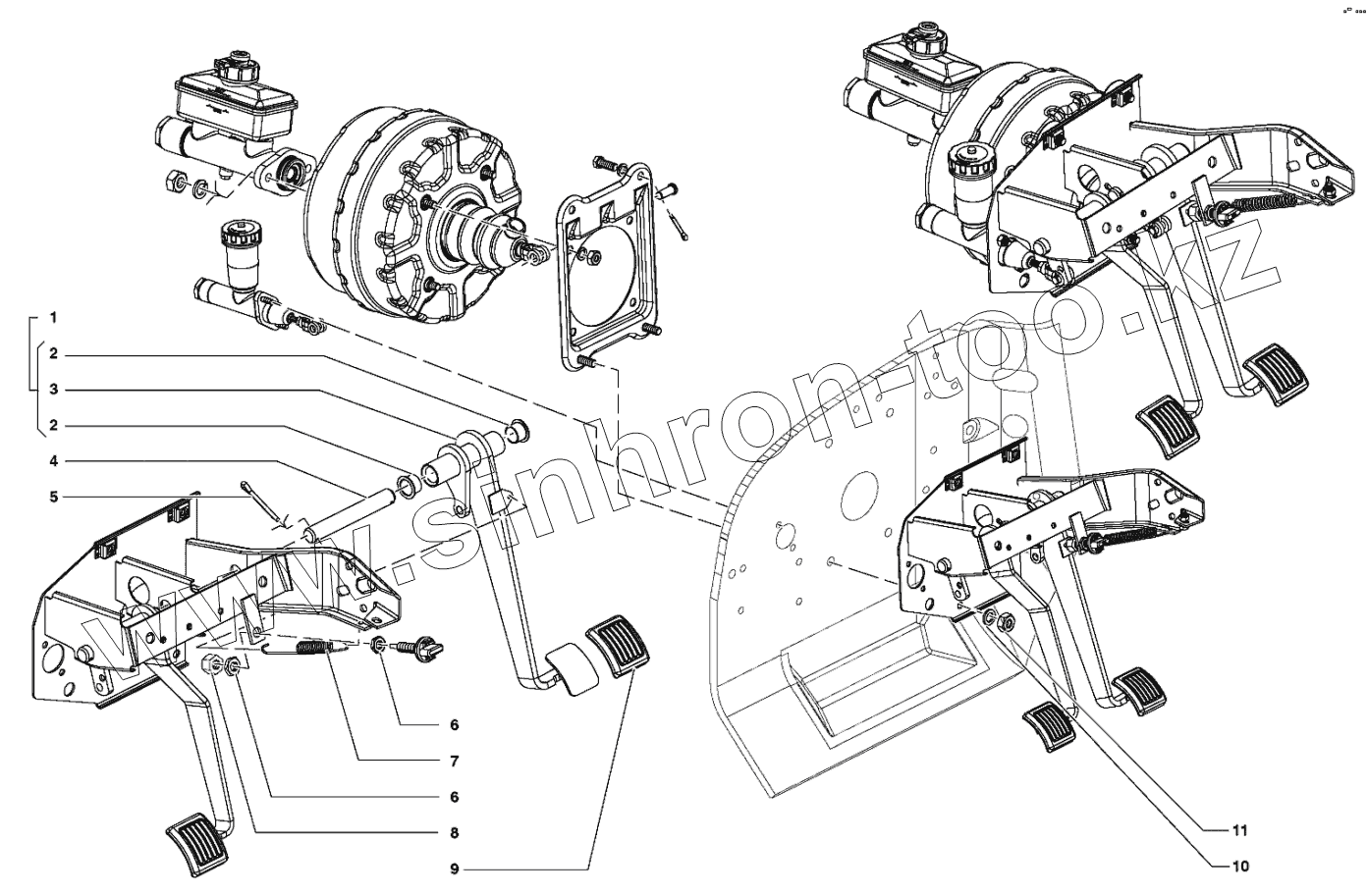 Каталог запасных частей к технике: УАЗ-31519. Педаль и привод механизма управления тормозами