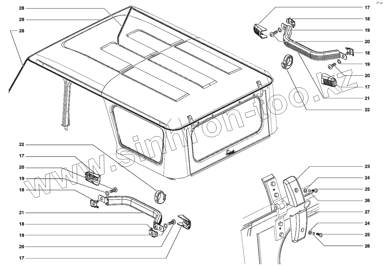 Крыша в сборе, обивка крыши, окно крыши, термошумоизоляция крыши