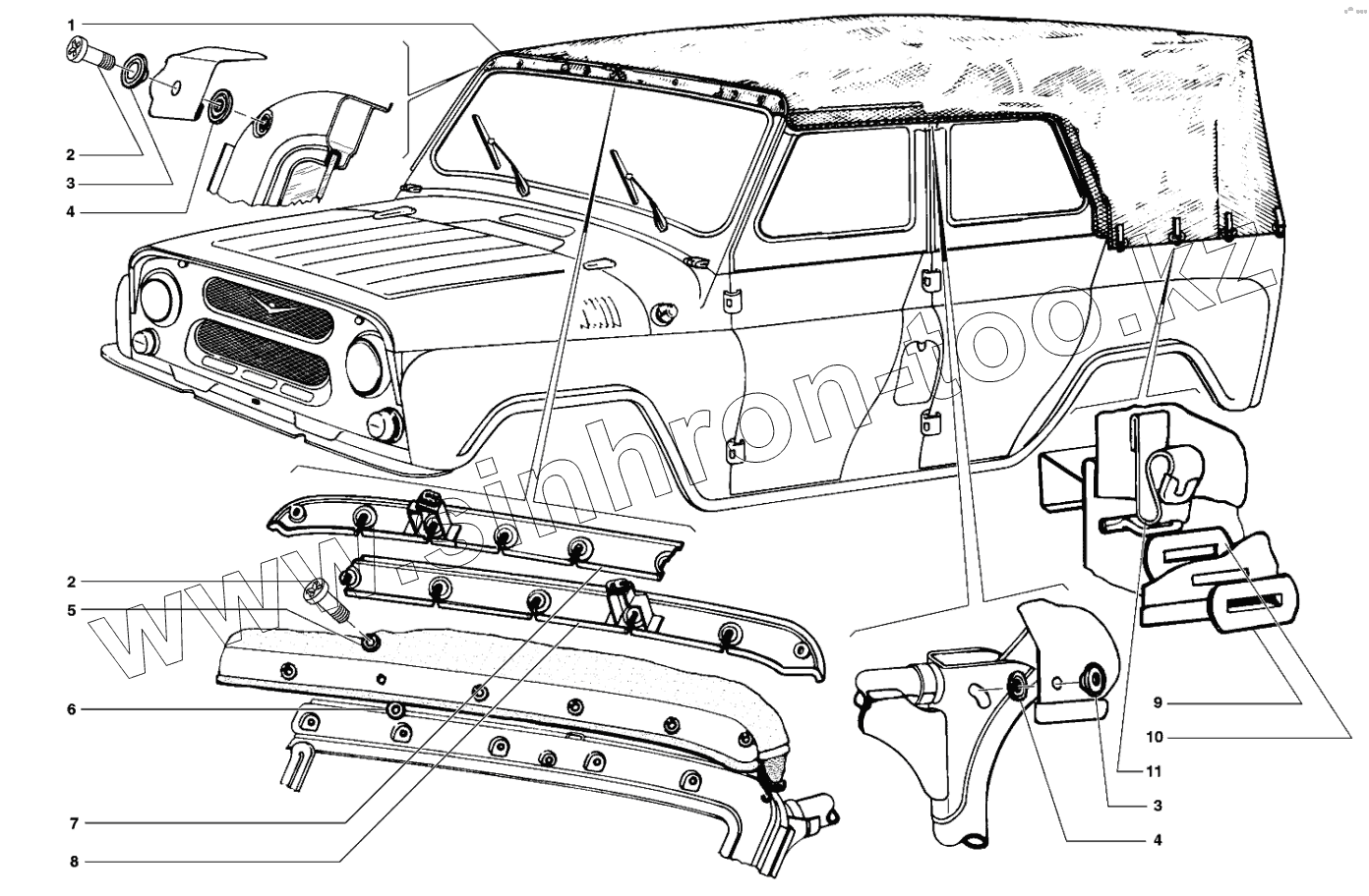 Каталог запасных частей к технике: УАЗ-31519. Тент в сборе