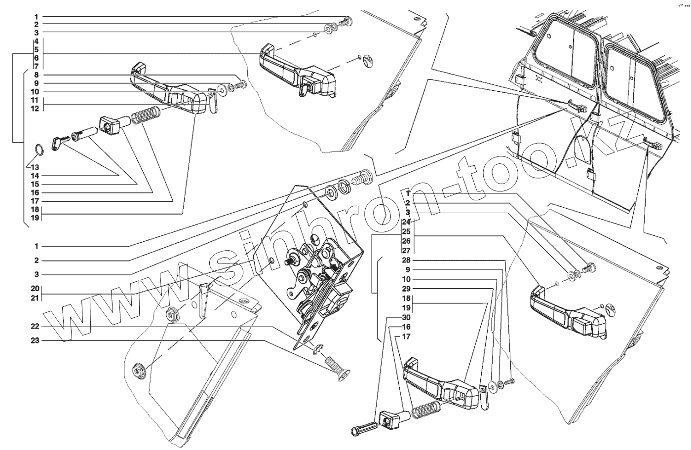 Каталог запасных частей к технике: УАЗ-31519. Замок и ручки передней и задней дверей