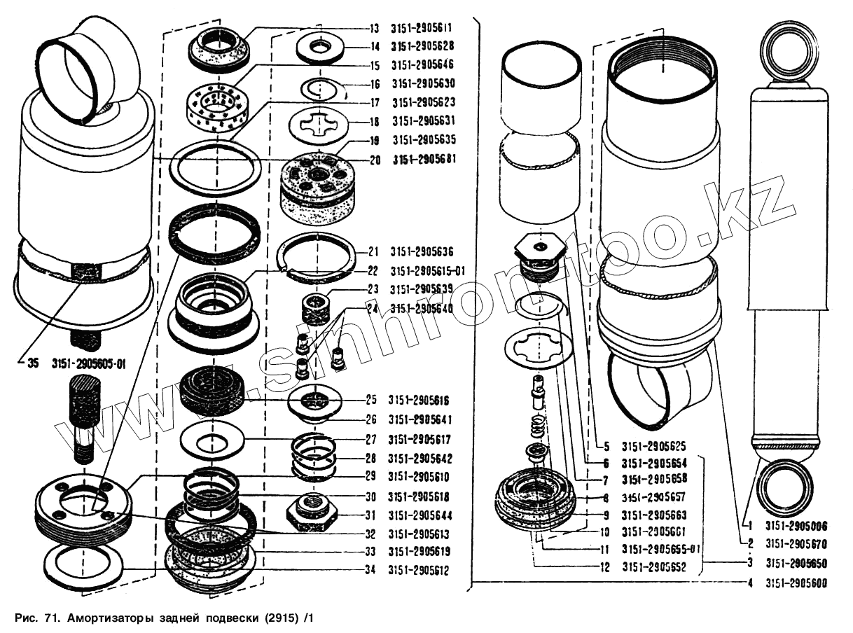 Каталог запасных частей к технике: УАЗ-3151. Амортизаторы задней подвески