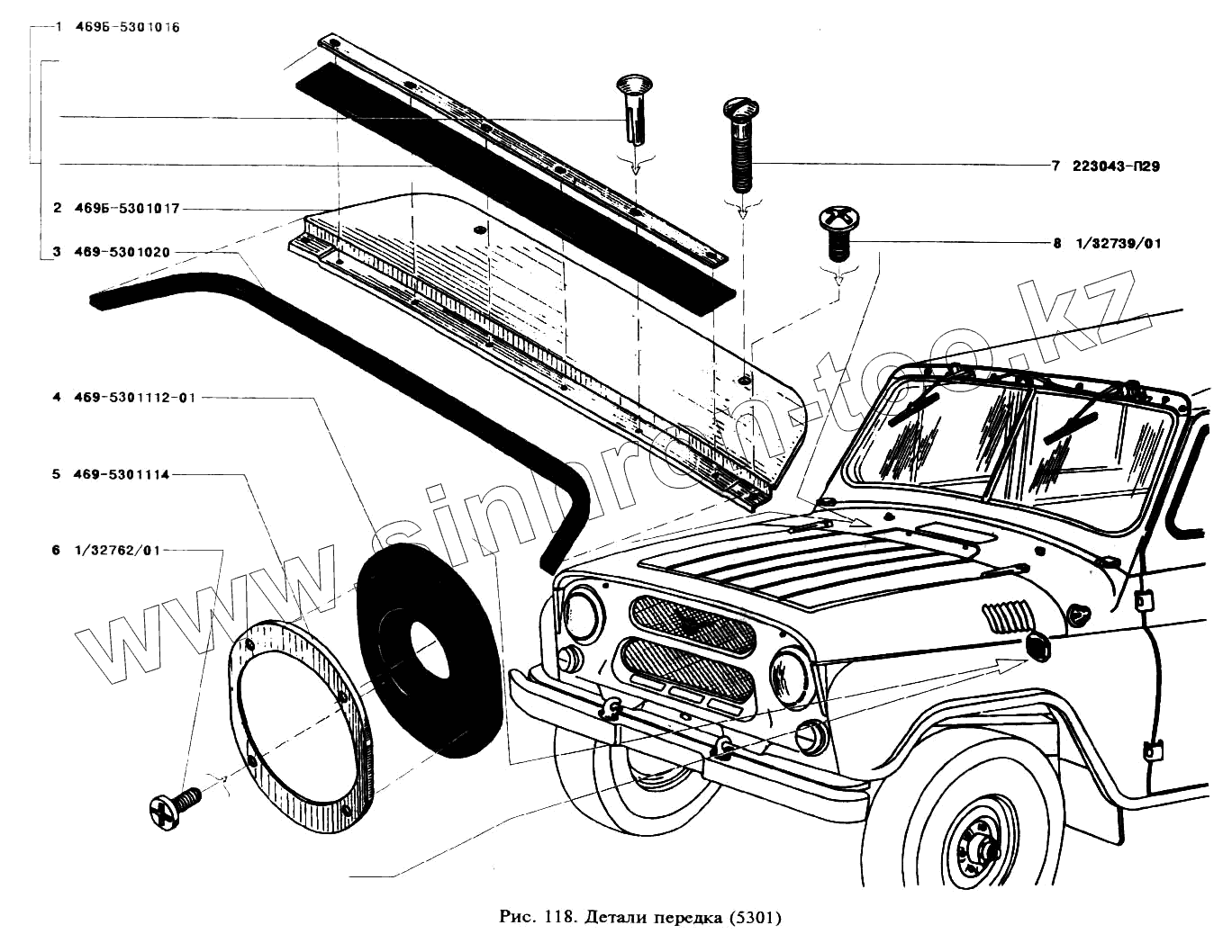 Каталог запасных частей к технике: УАЗ-3151. Детали передка