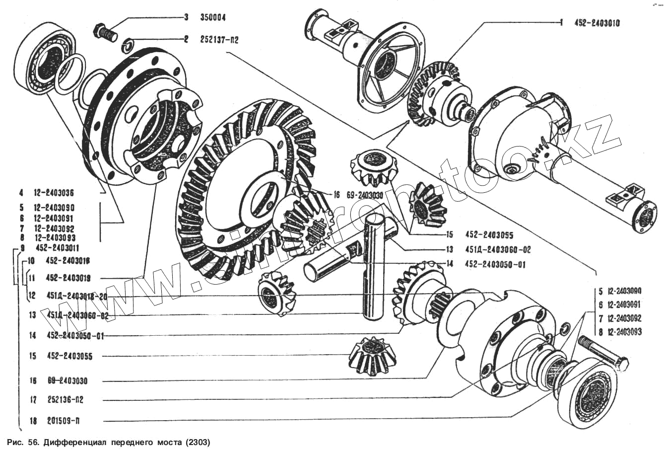 Каталог запасных частей к технике: УАЗ-3151. Дифференциал переднего моста