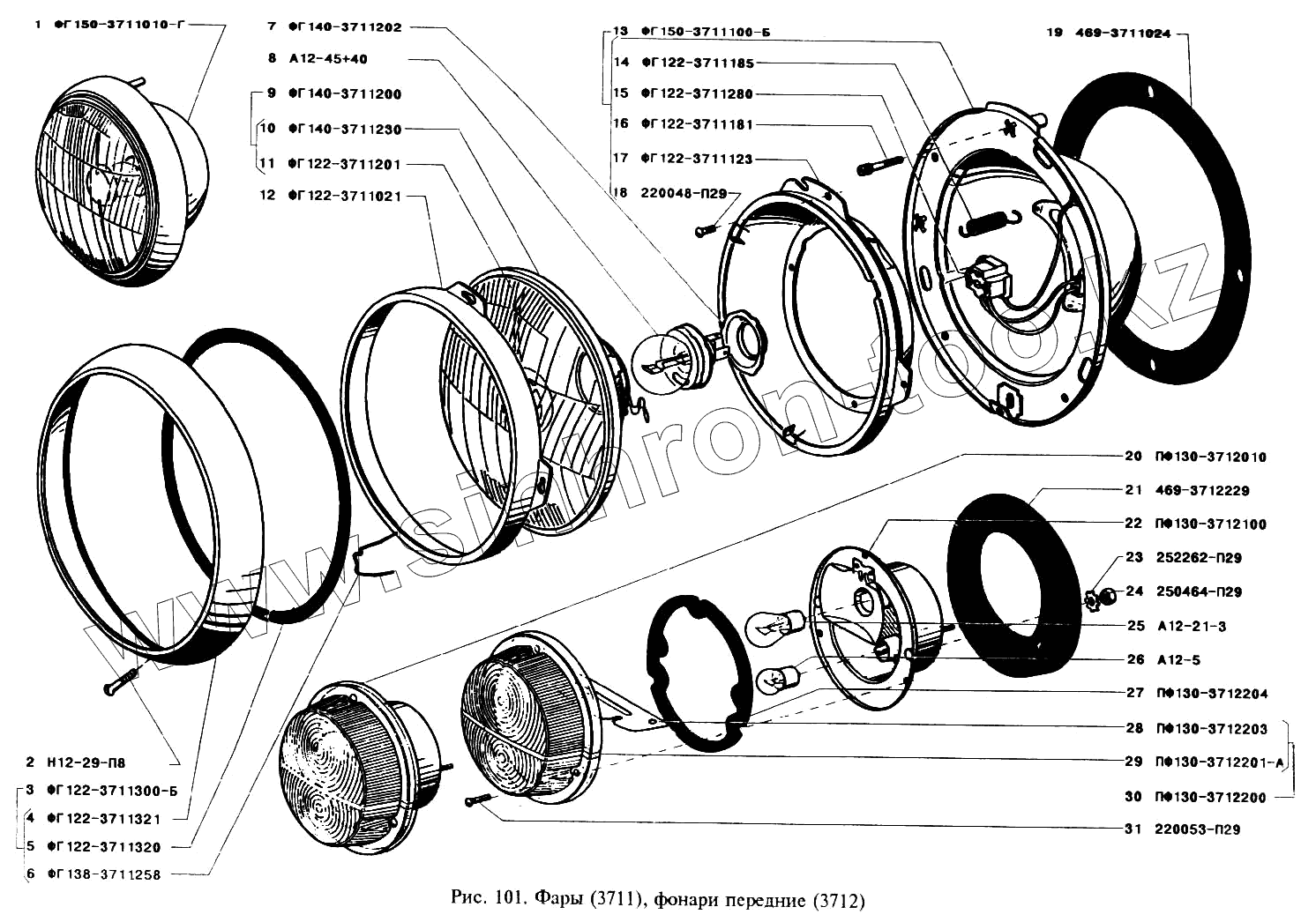 Каталог запасных частей к технике: УАЗ-3151. Фары и фонари передние