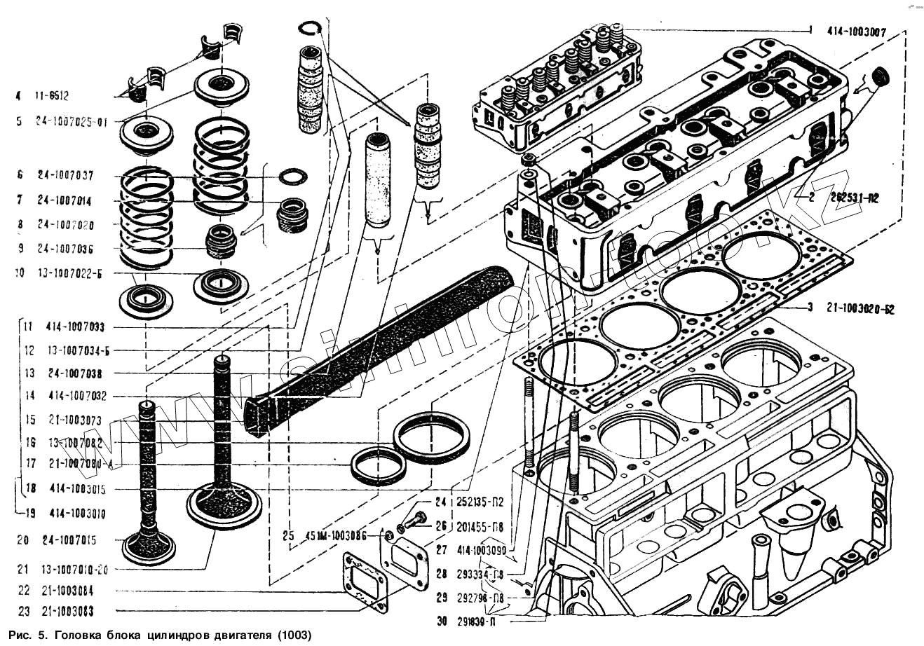 Каталог запасных частей к технике: УАЗ-3151. Головка блока цилиндров двигателя