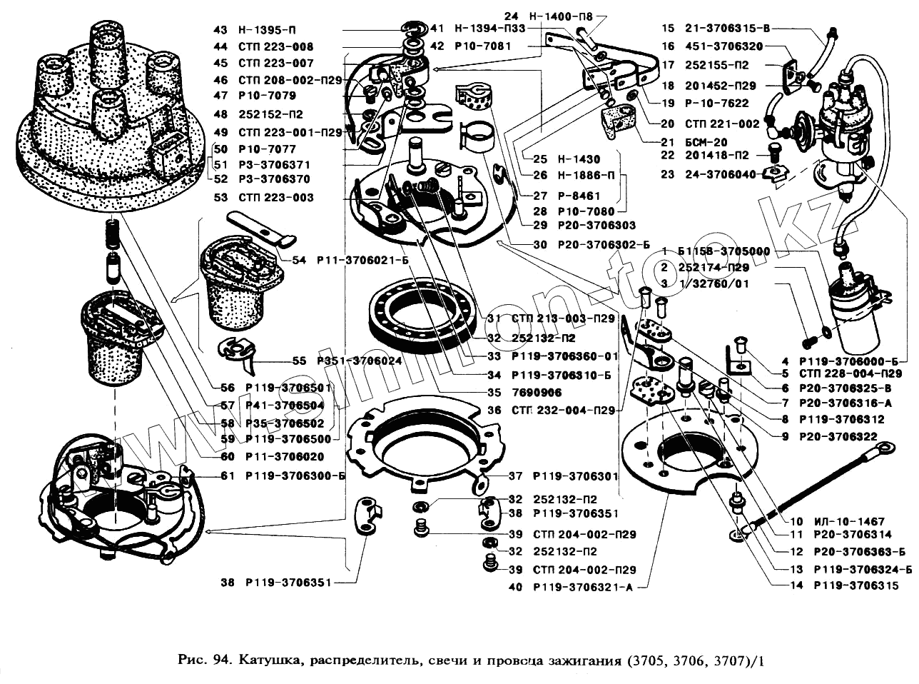 Каталог запасных частей к технике: УАЗ-3151. Катушка, распределитель, свечи и провода зажигания