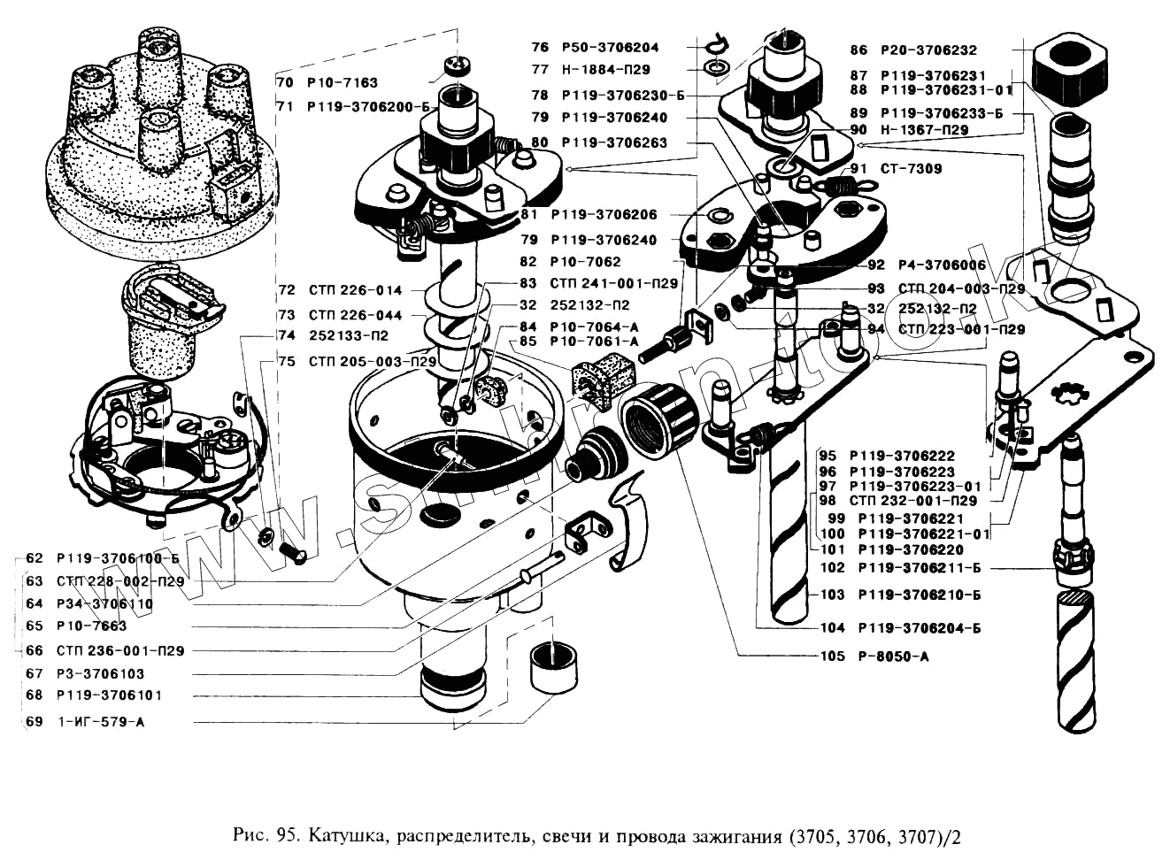 Каталог запасных частей к технике: УАЗ-3151. Катушка, распределитель, свечи и провода зажигания