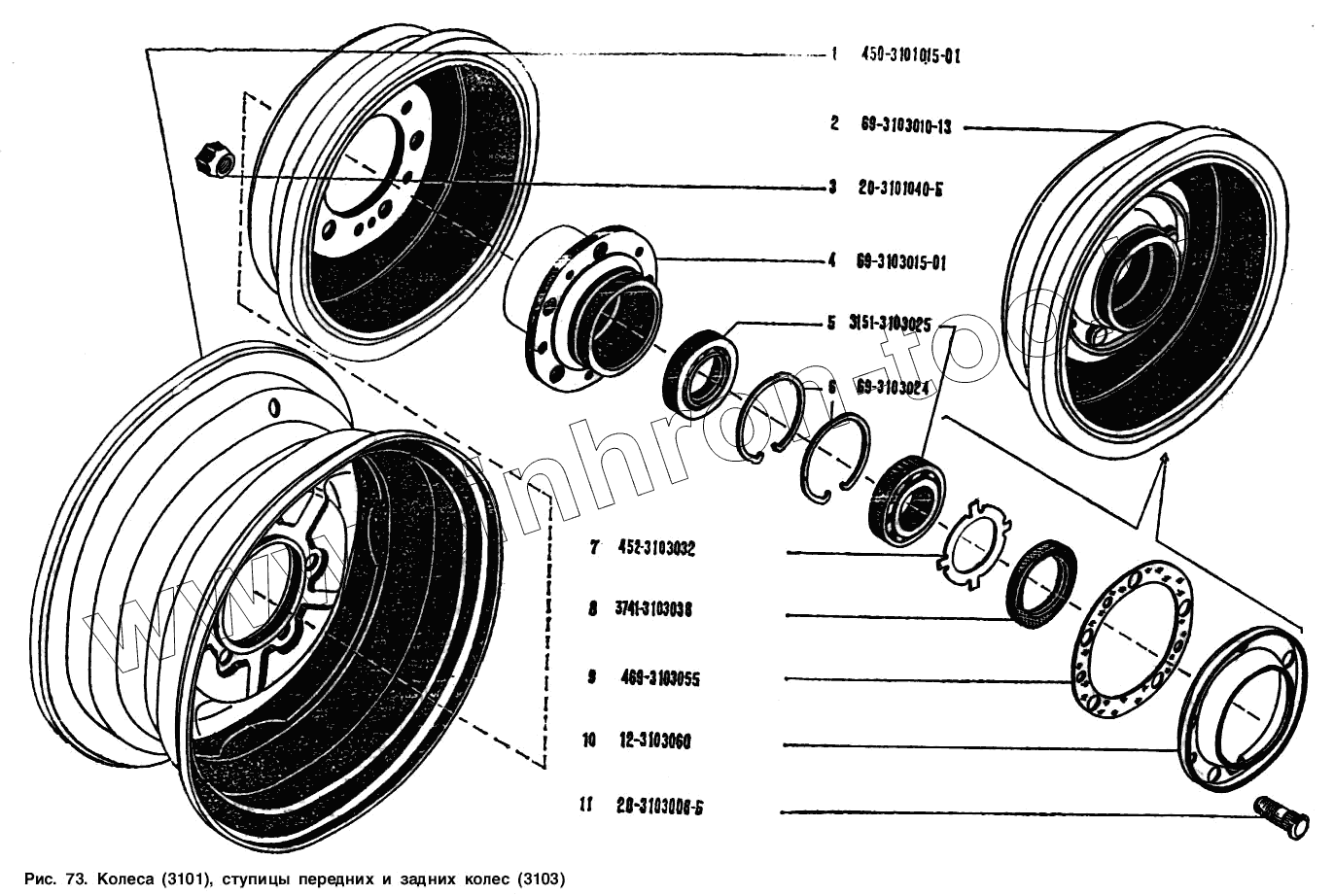 Каталог запасных частей к технике: УАЗ-3151. Колеса, ступицы передних и задних колес