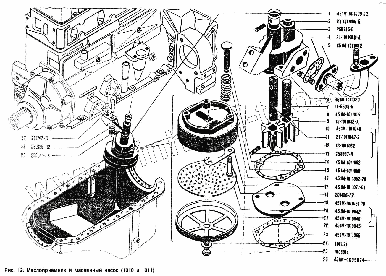 Каталог запасных частей к технике: УАЗ-3151. Маслоприемник и масляный насос