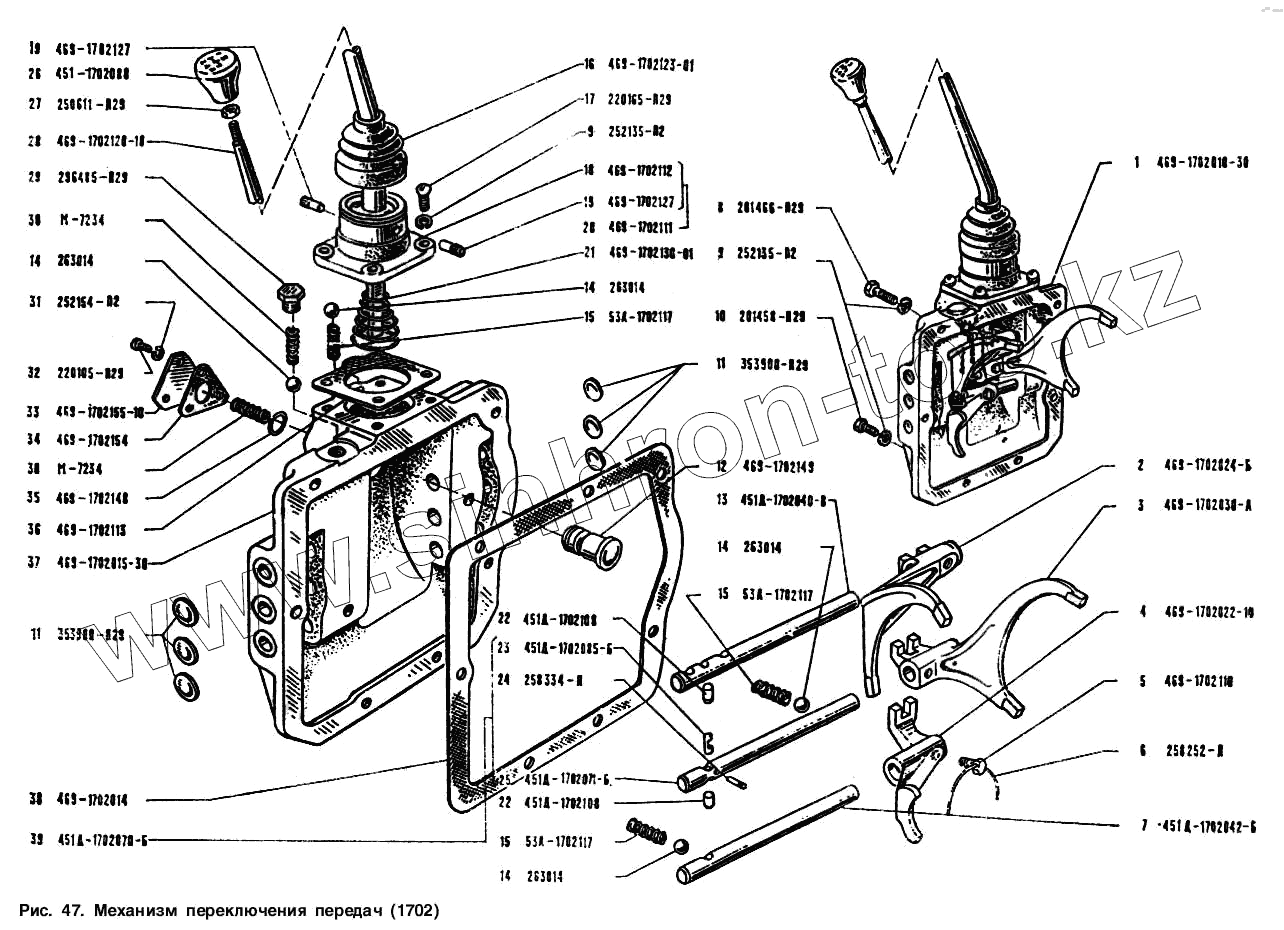 Каталог запасных частей к технике: УАЗ-3151. Механизм переключения передач