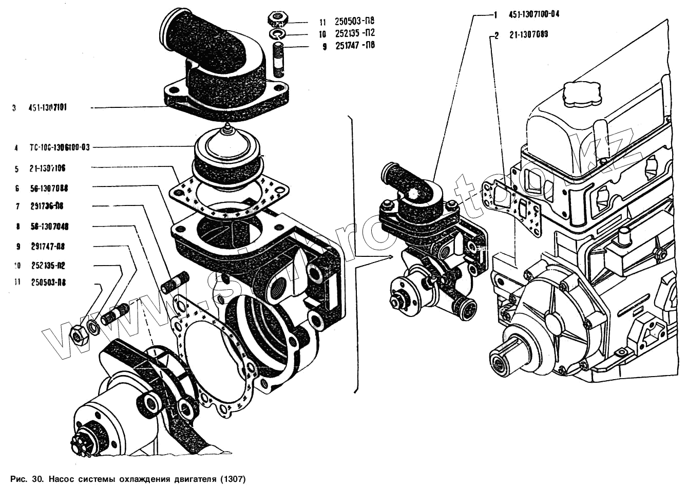Каталог запасных частей к технике: УАЗ-3151. Насос системы охлаждения двигателя