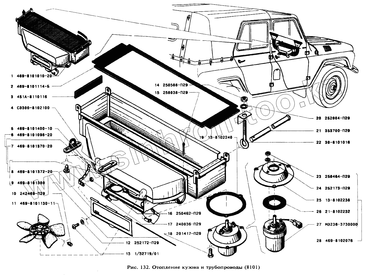 Каталог запасных частей к технике: УАЗ-3151. Отопление кузова и трубопроводы