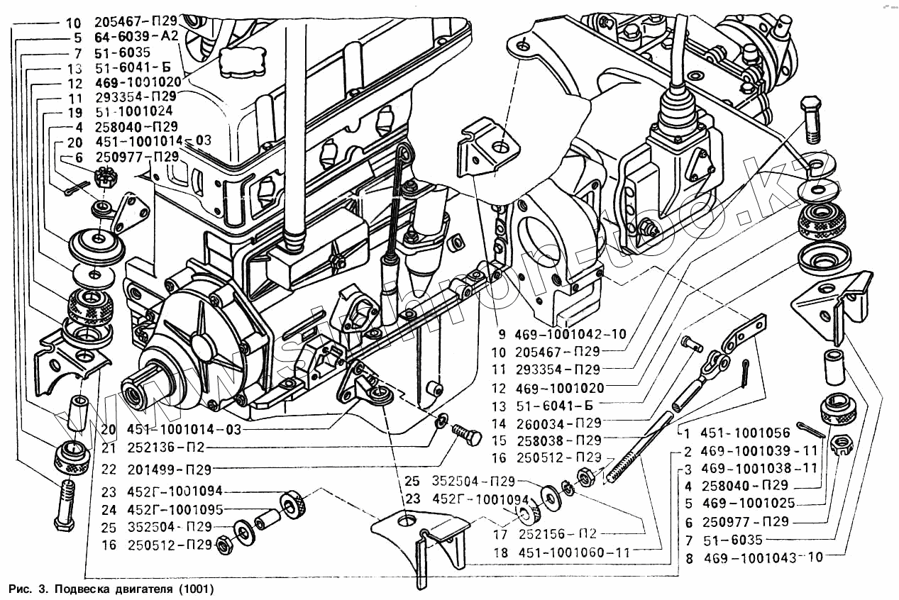 Каталог запасных частей к технике: УАЗ-3151. Подвеска двигателя