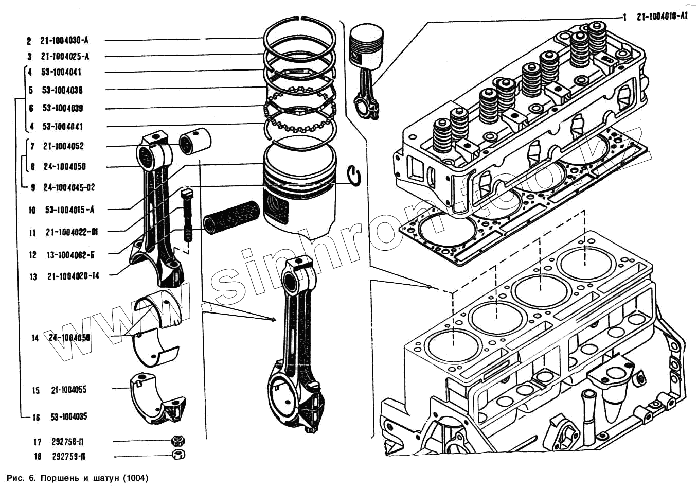 Каталог запасных частей к технике: УАЗ-3151. Поршень и шатун