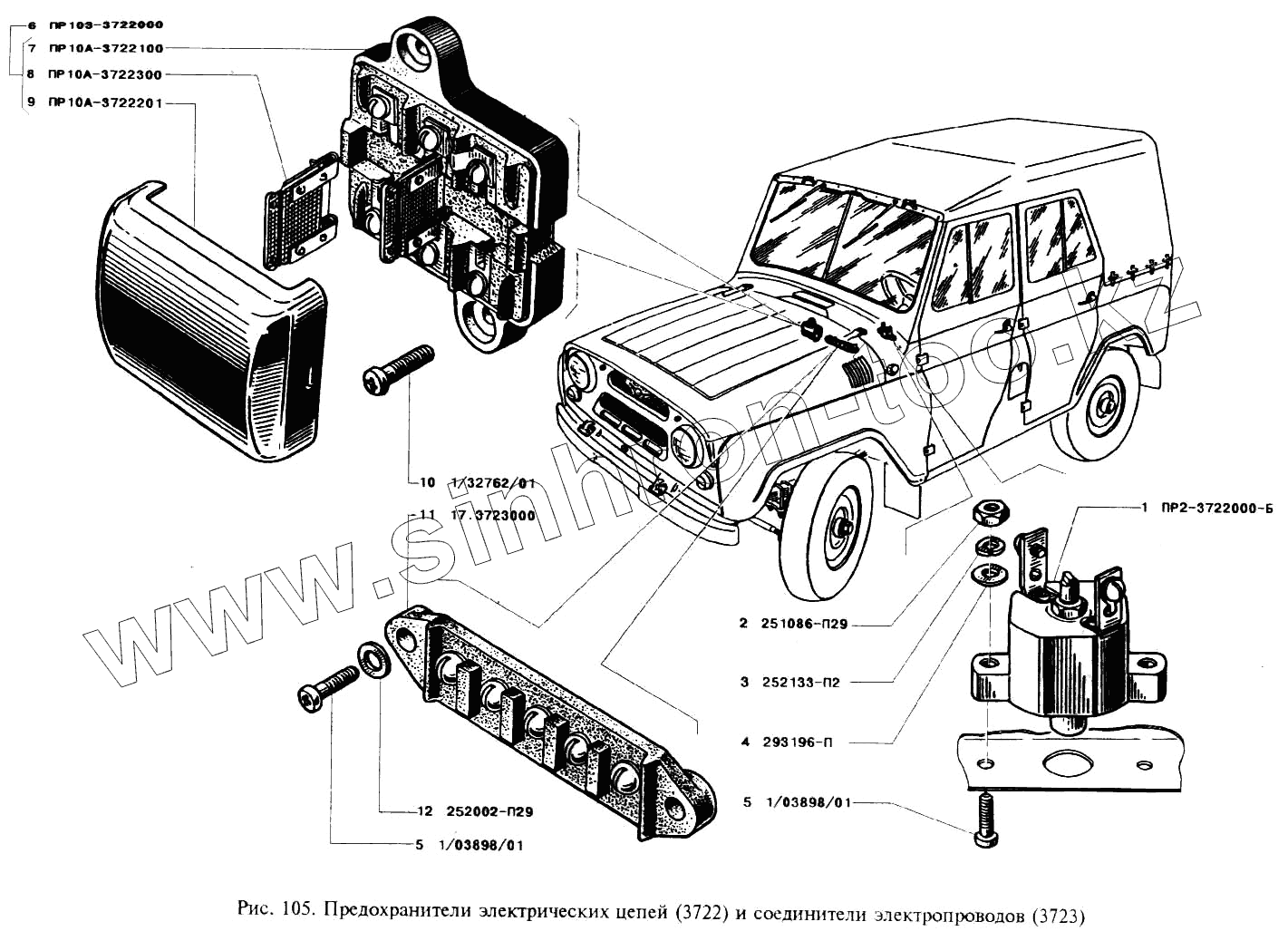 Каталог запасных частей к технике: УАЗ-3151. Предохранители электрических цепей, соединители электропроводов