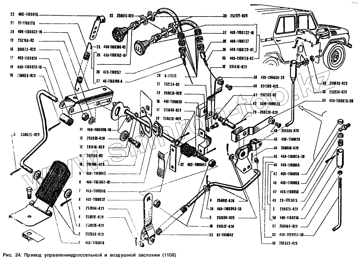 Каталог запасных частей к технике: УАЗ-3151. Привод управления дроссельной и воздушной заслонками