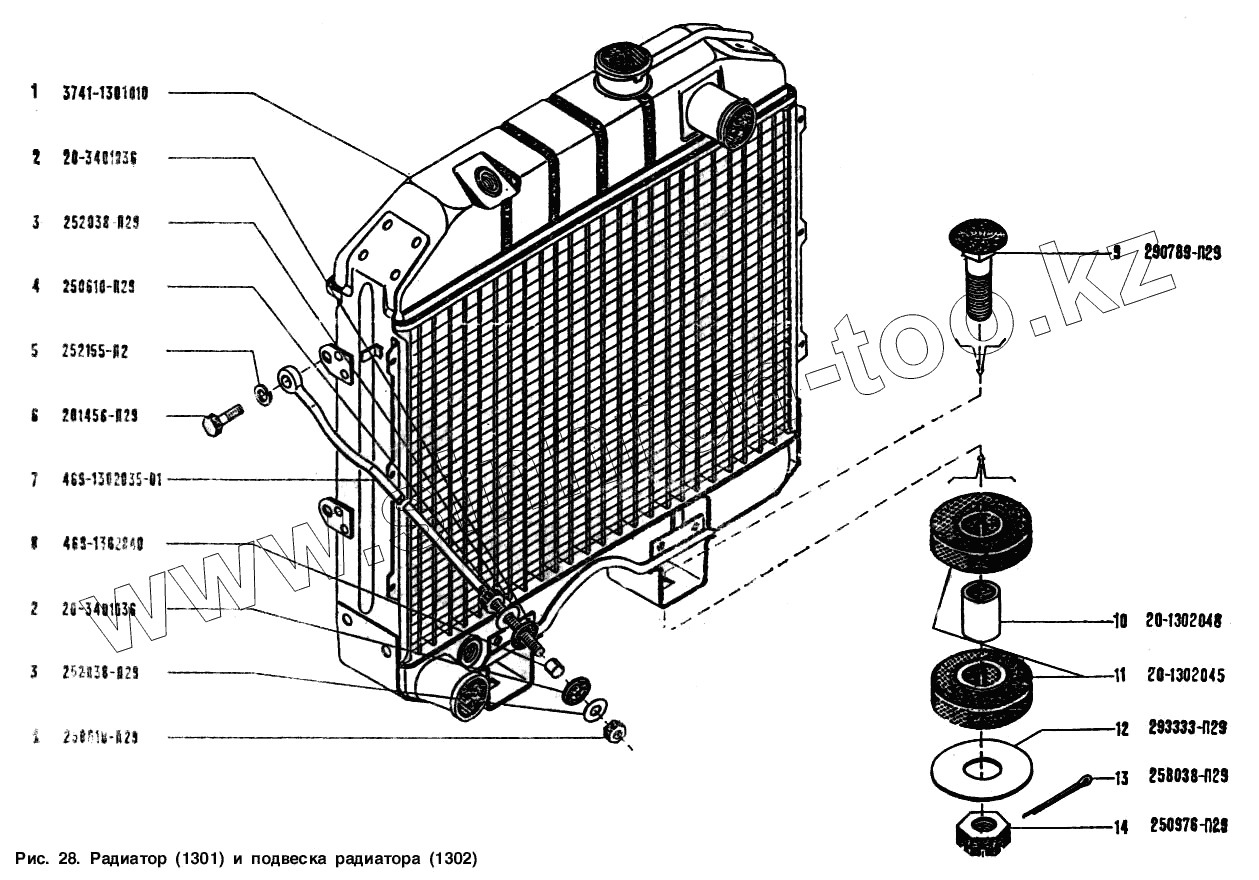 Каталог запасных частей к технике: УАЗ-3151. Радиатор и подвеска радиатора