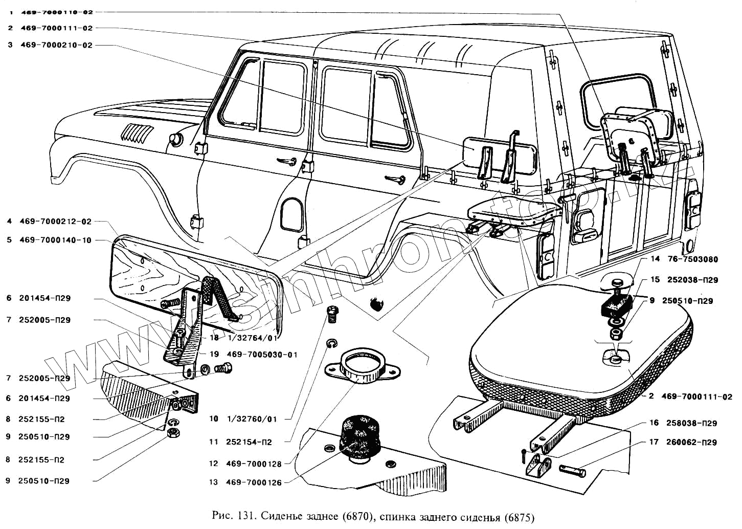 Каталог запасных частей к технике: УАЗ-3151. Сиденье заднее, спинка заднего сиденья