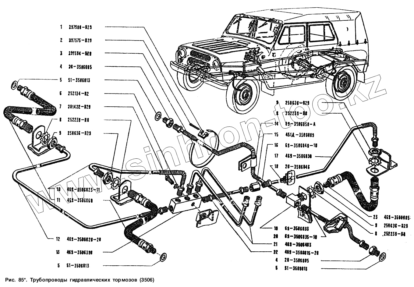 Каталог запасных частей к технике: УАЗ-3151. Трубопроводы гидравлических тормозов