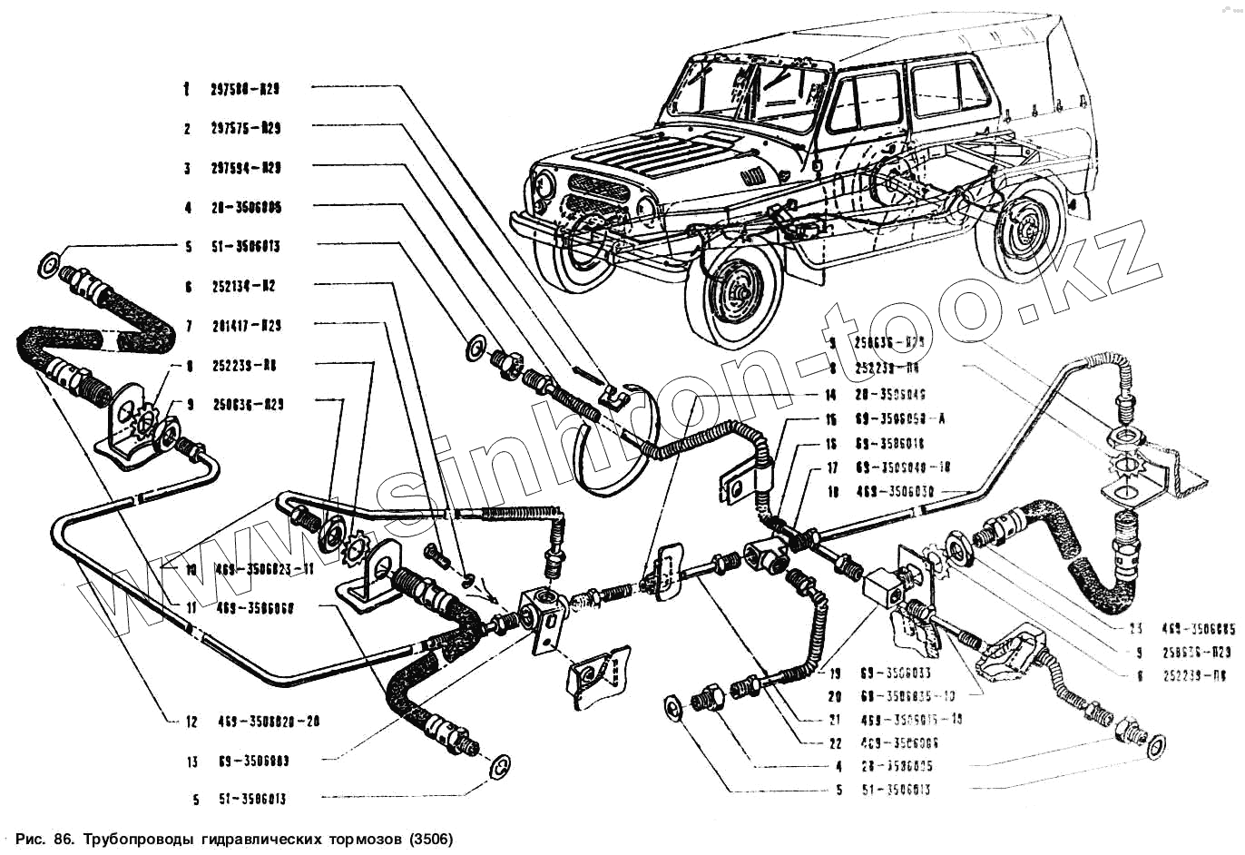 Каталог запасных частей к технике: УАЗ-3151. Трубопроводы гидравлических тормозов