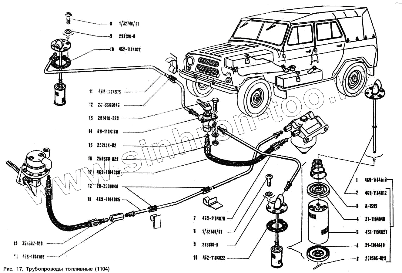 Каталог запасных частей к технике: УАЗ-3151. Трубопроводы топливные