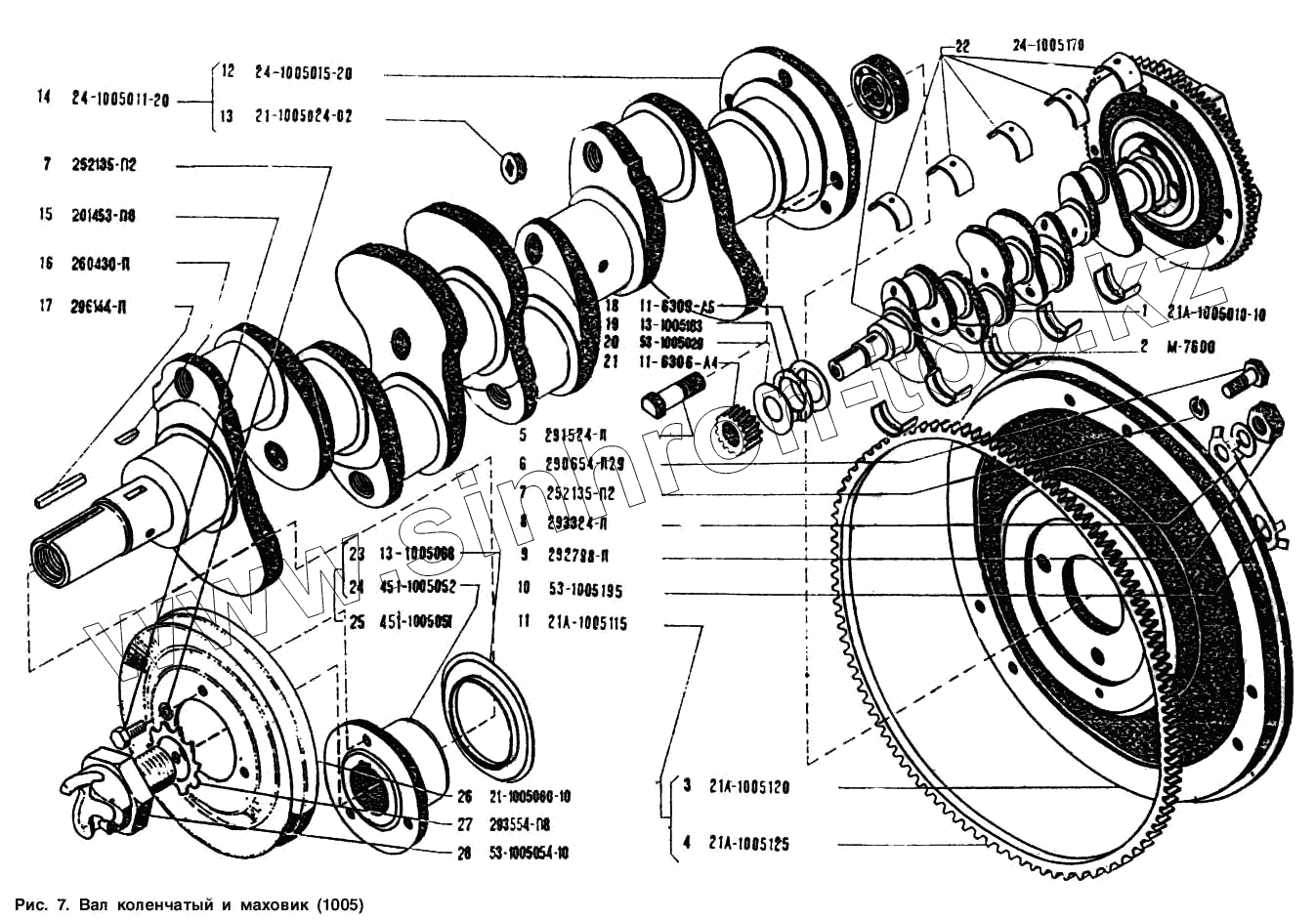 Каталог запасных частей к технике: УАЗ-3151. Вал коленчатый и маховик