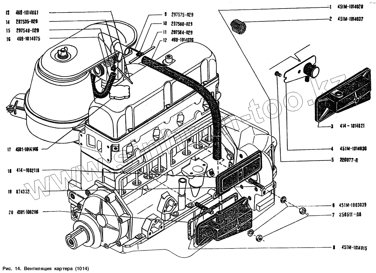 Каталог запасных частей к технике: УАЗ-3151. Вентиляция картера