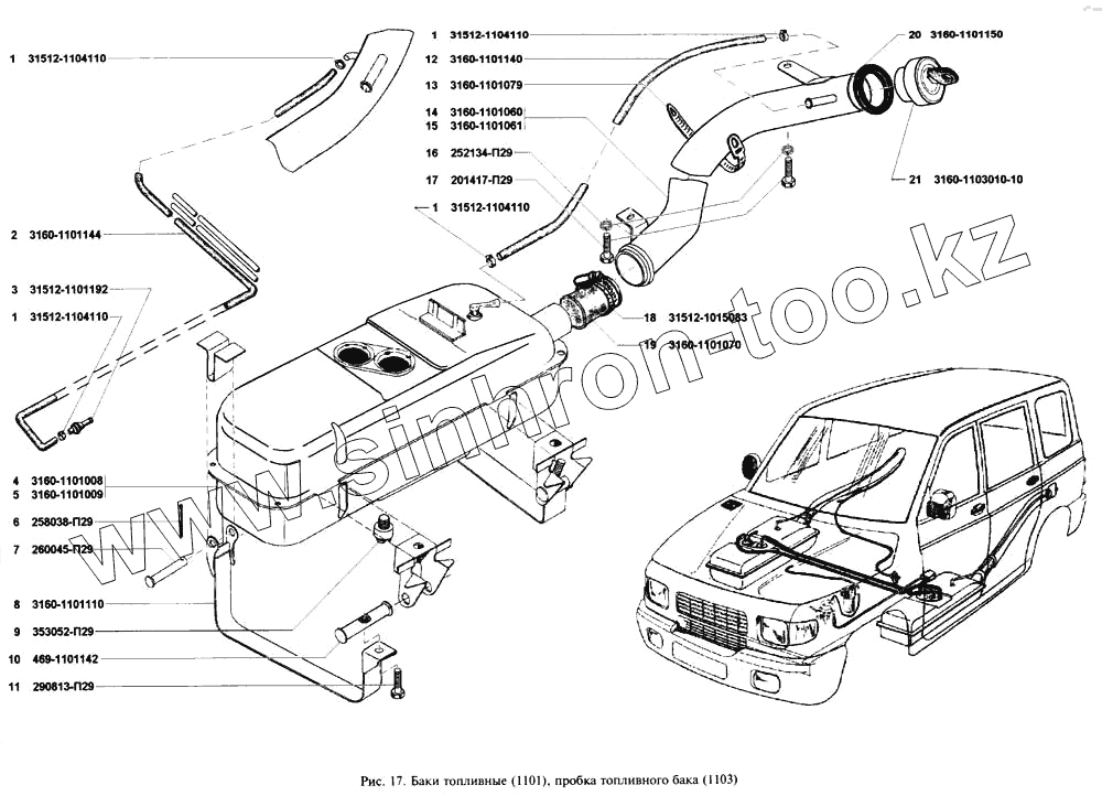 Каталог запасных частей к технике: УАЗ-3160. Баки топливные, пробка топливного бака