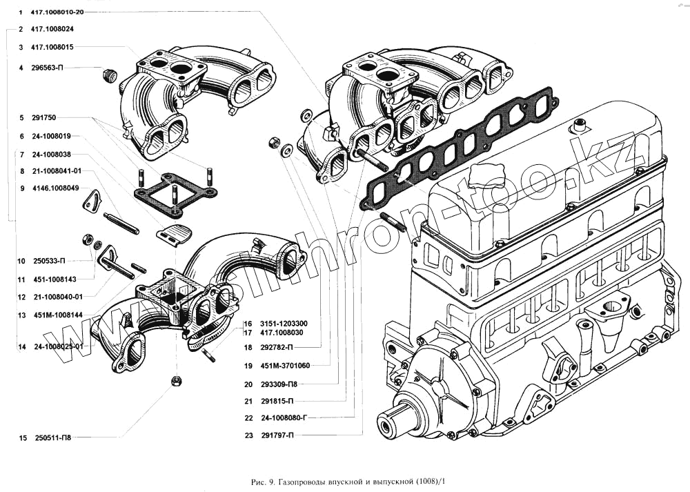Каталог запасных частей к технике: УАЗ-3160. Газопроводы впускной и выпускной
