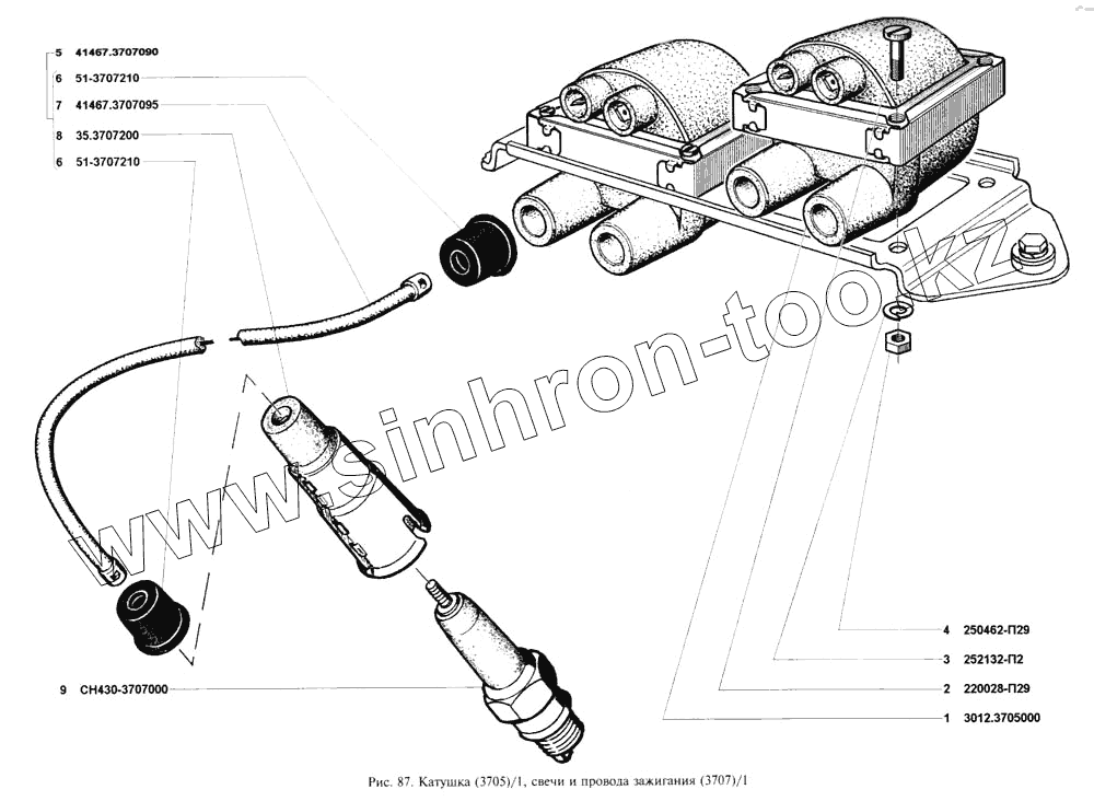 Каталог запасных частей к технике: УАЗ-3160. Катушка зажигания, свечи и провода зажигания