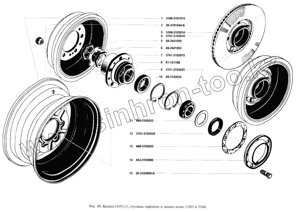 Каталог запасных частей к технике: УАЗ-3160. Колеса, ступицы передних колес, ступицы задних колес