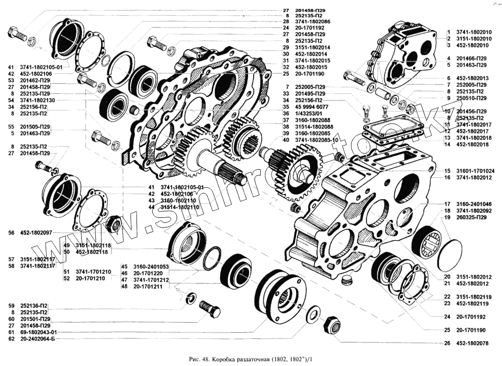 Каталог запасных частей к технике: УАЗ-3160. Коробка раздаточная