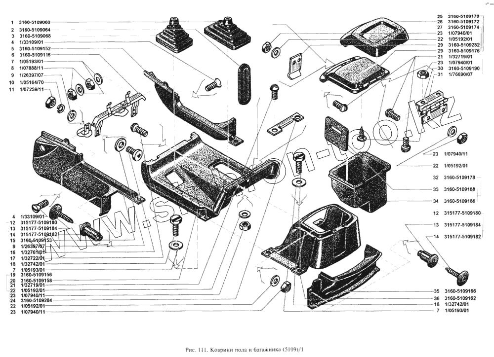 Каталог запасных частей к технике: УАЗ-3160. Коврики пола и багажника