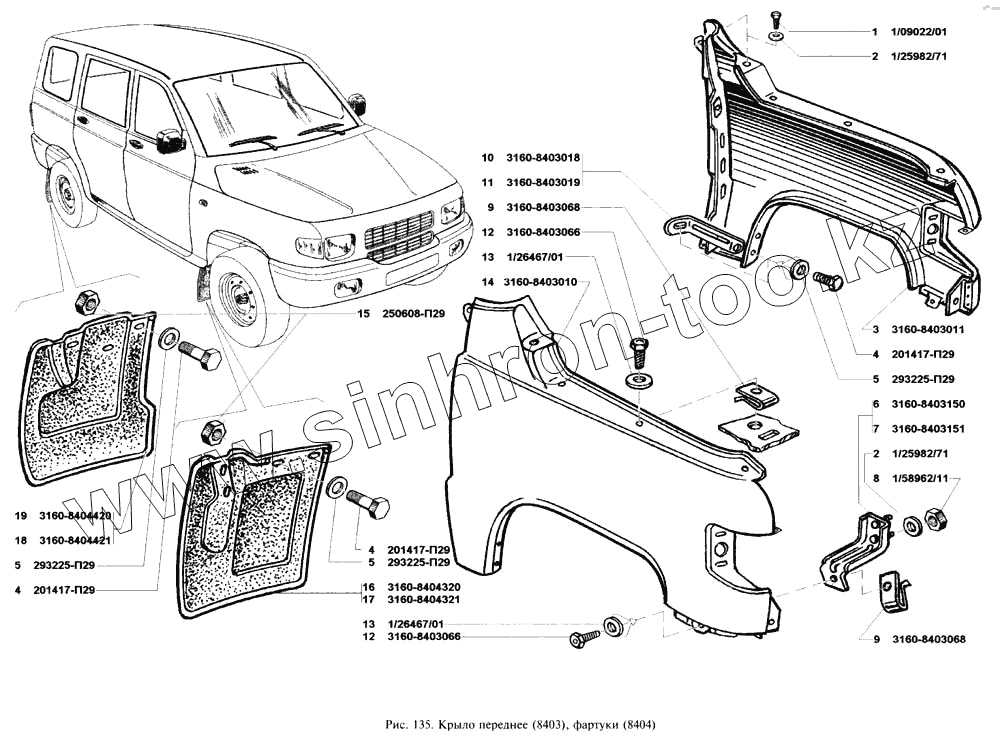 Каталог запасных частей к технике: УАЗ-3160. Крыло переднее, фартуки