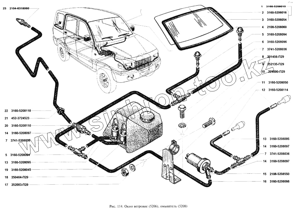 Каталог запасных частей к технике: УАЗ-3160. Окно ветровое, омыватель