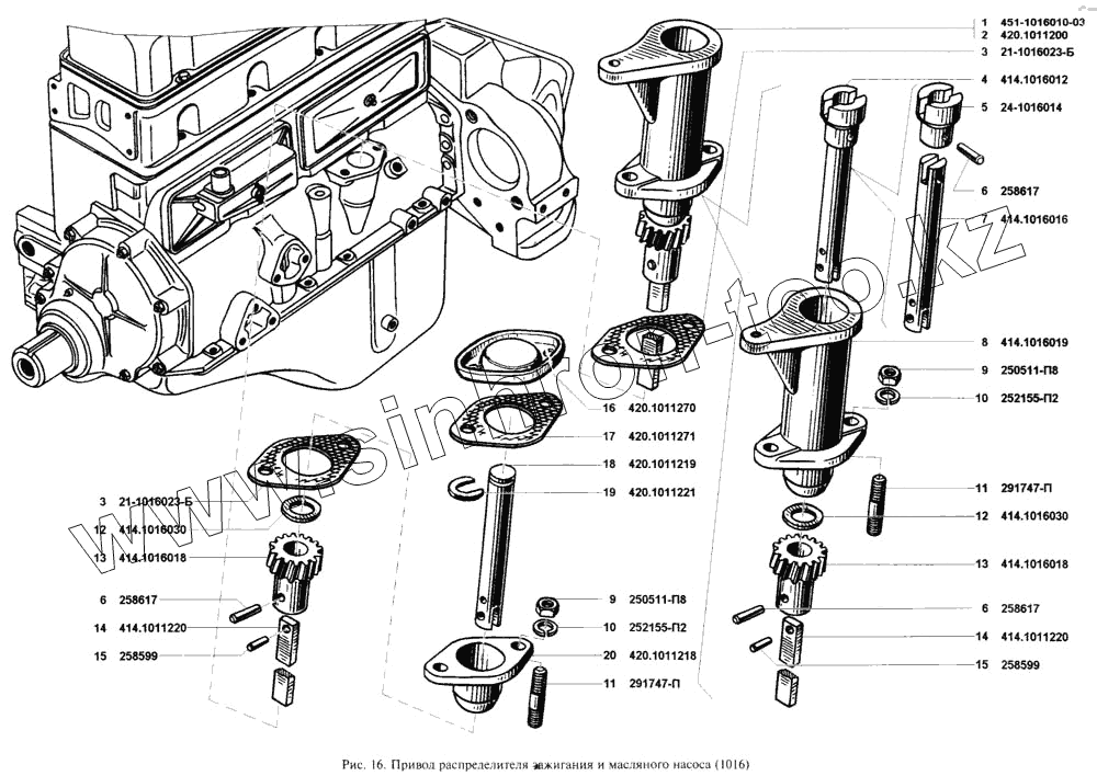 Каталог запасных частей к технике: УАЗ-3160. Привод распределителя зажигания и масляного насоса