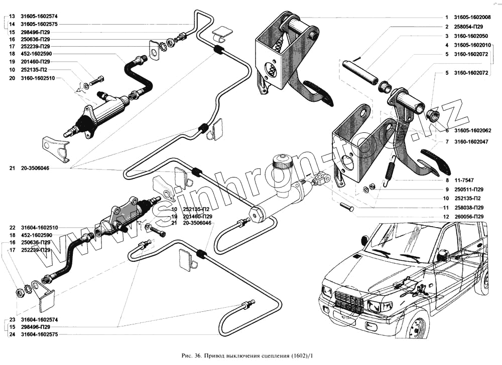 Каталог запасных частей к технике: УАЗ-3160. Привод выключения сцепления