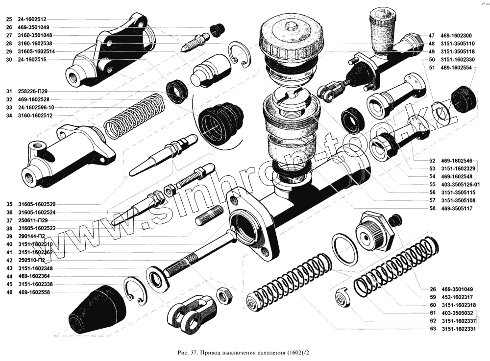 Каталог запасных частей к технике: УАЗ-3160. Привод выключения сцепления
