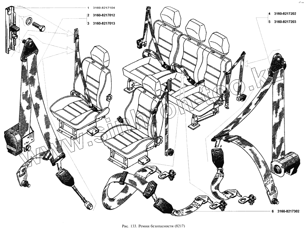 Каталог запасных частей к технике: УАЗ-3160. Ремни безопасности
